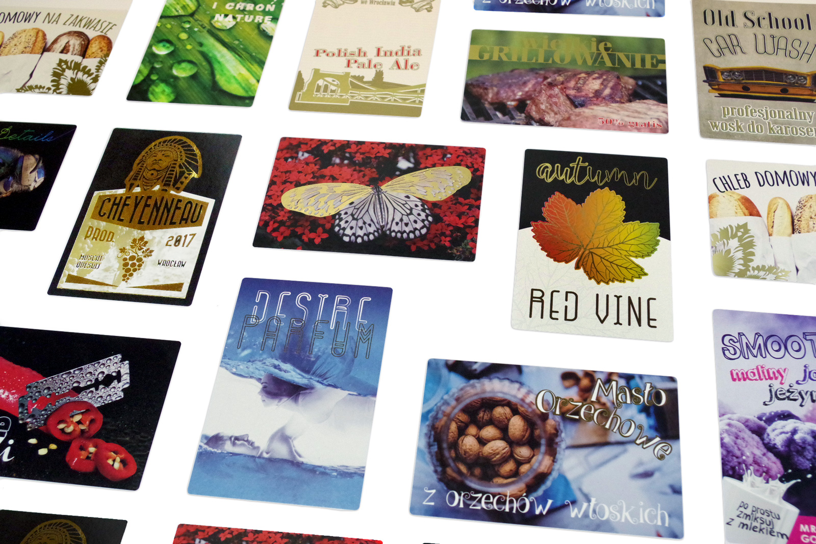 etykiety na materiałach nietypowych (papiery ozdobne (tzw. winiarskie), kraft, itp.)
